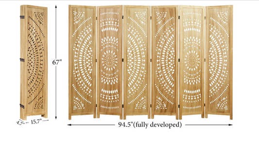 66.9Inch Folding Room Divider Natural Paulownia Wood