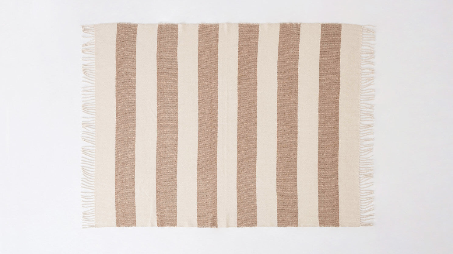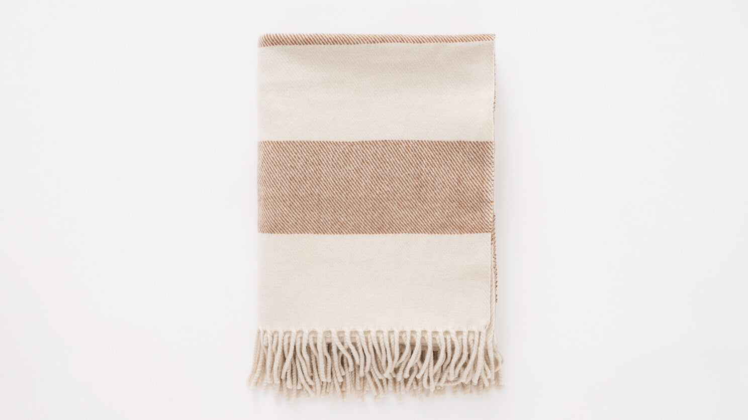 Ebon is a simple striped wool throw with fringed ends. The natural colour pallet brings out the softness achieved through hand loom production. The neutral look and warm feel makes it a great addition to any room for Fall.