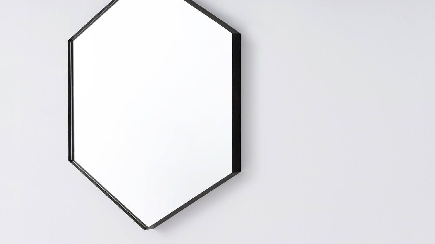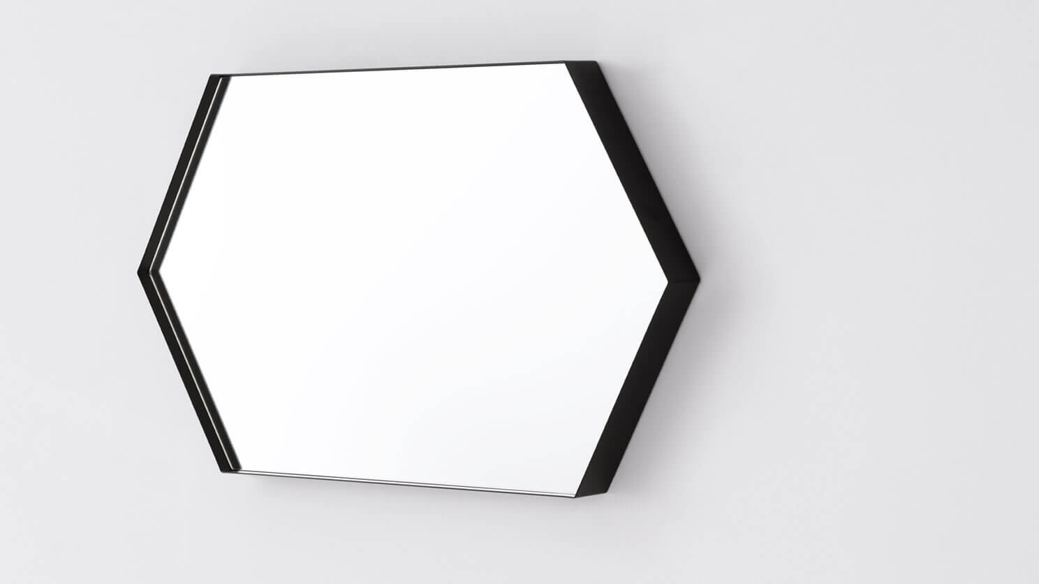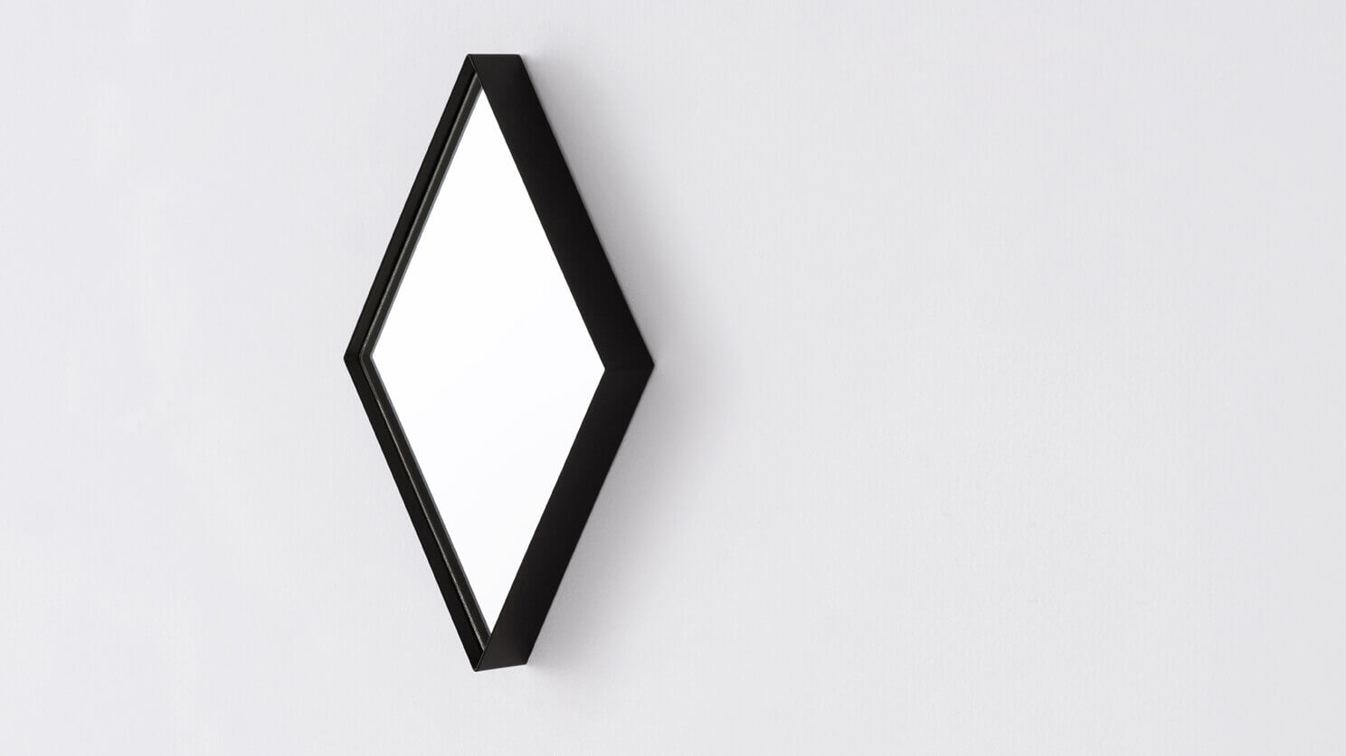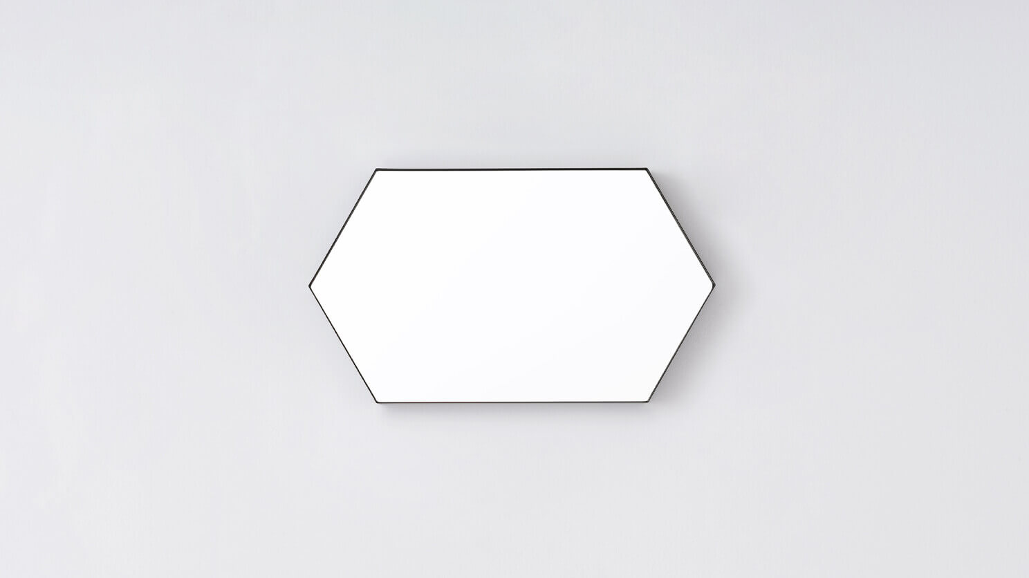 A modular mirror that can stand alone or make a visual impact when clustered with different shapes and sizes. Available in matte black and with versatile mounting options.