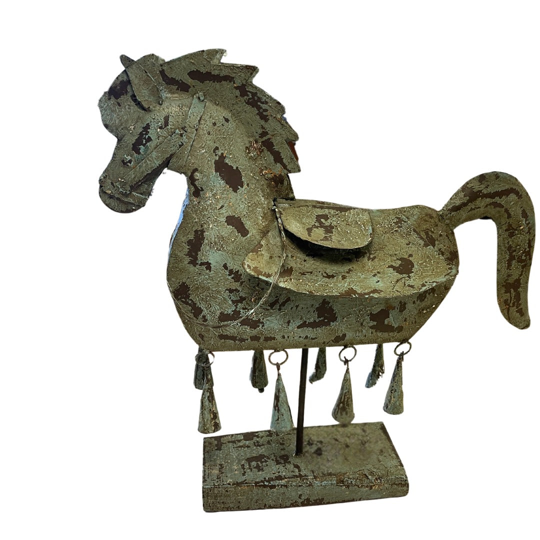 Enhance your home decor with the Iron Horse Green. Crafted from durable iron, this decorative horse statue adds a touch of elegance to any room. Its vibrant green color adds a pop of color and liveliness to your space. Perfect for horse lovers and interior enthusiasts alike.