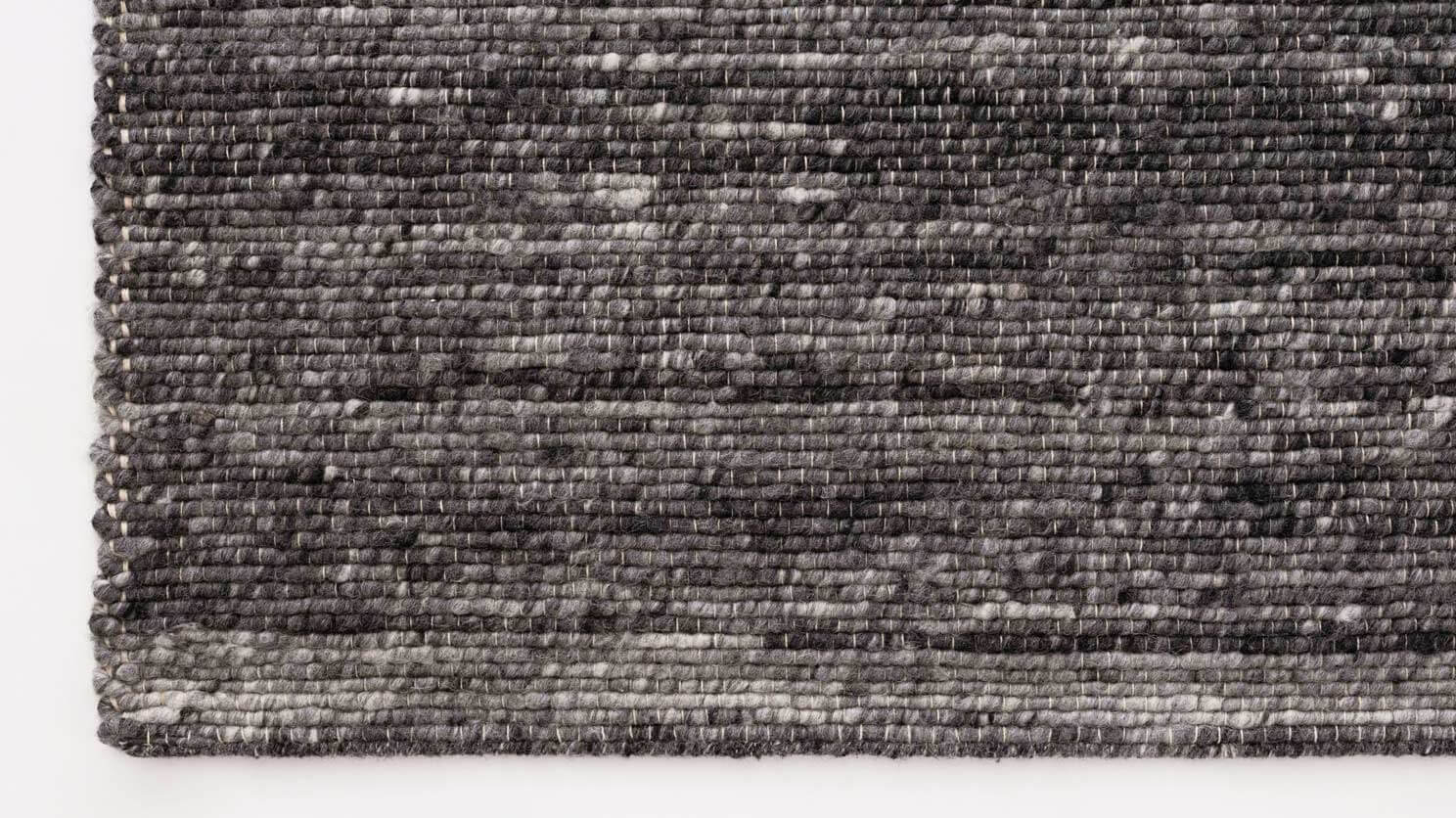 This handwoven rug is made with New Zealand wool wrapped around a jute weave, making it both durable and soft to the touch. This unique handweaving technique creates a combination of grey tones that adds texture and visual depth to your space. Available in 5’x8’, 6’x9’, 8’x10’ or 9’x12’ in either charcoal or light grey.