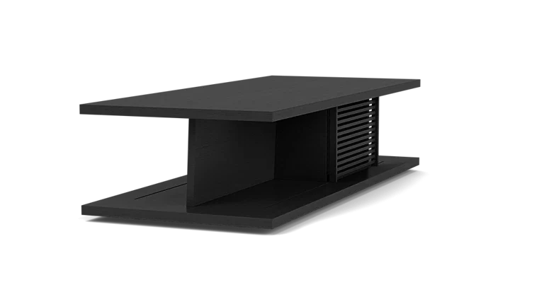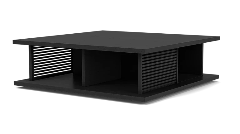 The coffee table is available in either rectangle or square, in oak or walnut. The small doors are sold in a pack of two, in either fabric or an oak or walnut slatted finish.