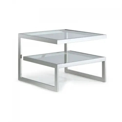 Introducing the Side Table Ayan, the perfect addition to any modern home. Made with sleek silver steel and a clear glass top, this table is both stylish and functional. Easily add a touch of elegance to your space with this versatile and durable side table.