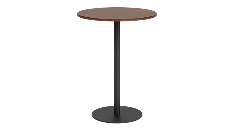 Available with a walnut top and a black powder-coated metal base. Choose from a 34.5” counter-height base or a 40.5” bar-height base.