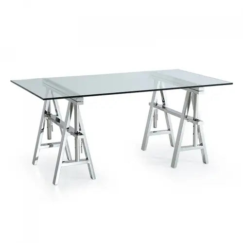 The Table Delevan Chrome is a versatile and modern addition to any space. Its adjustable height feature allows for customization and convenience, while its chrome finish adds a sleek and polished look. Perfect for elevating any room's style and functionality.